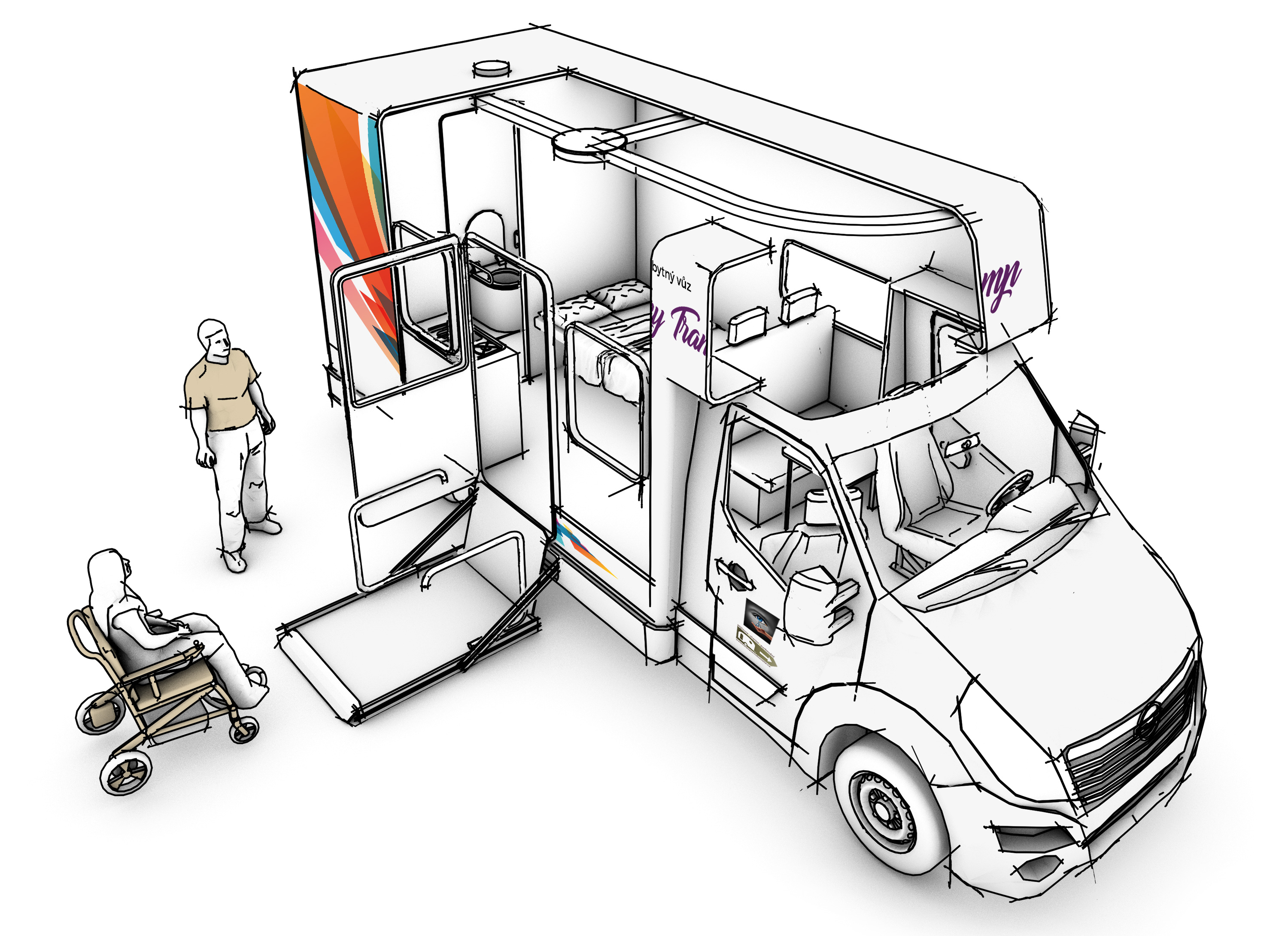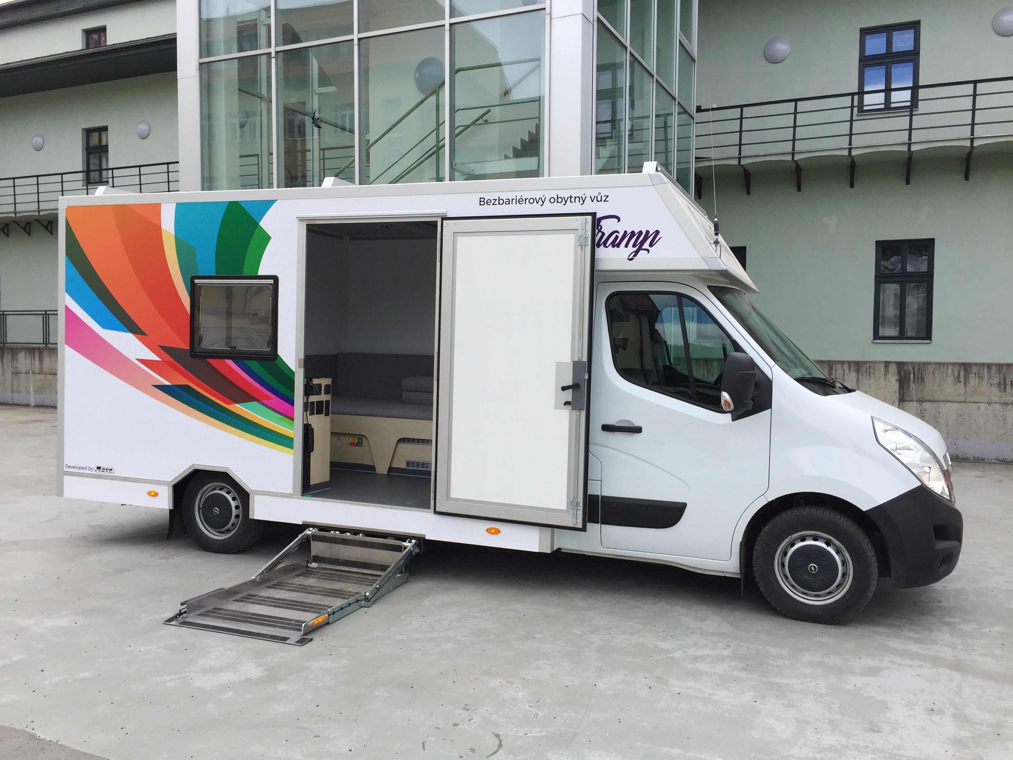 Charley Tramp je bezbariérový obytný vůz s robotizovanou převodovkou určený až pro 4 osoby (1 řidič a 3 cestujících -> včetně jedné osoby na vozíku).